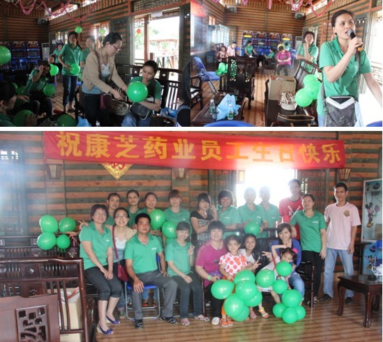 2013年3月24日,康芝藥業海南區員工期盼已久的壽星樂如期舉行。為給1-2月壽星們舉行一次別開生面的壽星樂活動,經過長期的策劃、商議以及民意調查,壽星籌備小組特將本期壽星樂選址在海口泮邊村休閑農莊,讓本期壽星們體驗農家生活享受別樣壽星樂。