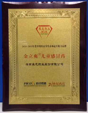 會(huì)議首先公布了2014年度中國制藥工業(yè)百強(qiáng)榜、中國連鎖藥店綜合實(shí)力百強(qiáng)和中國連鎖藥店直營力百強(qiáng)榜并進(jìn)行了頒獎(jiǎng),康芝藥業(yè)金立爽榮膺“2014-2015年度中國藥品零售市場最具魅力品牌”,充分展示了康芝藥業(yè)專注兒童大健康產(chǎn)業(yè)的品牌魅力以及擁有多個(gè)核心產(chǎn)品的市場競爭力。康芝藥業(yè)金立爽是第三代兒童感冒藥,作為國家質(zhì)量標(biāo)準(zhǔn)起草單位,一直以最高質(zhì)量標(biāo)準(zhǔn)引領(lǐng)抗病毒兒童感冒藥的品質(zhì)。此次“2014-2015年度中國藥品零售市場最具魅力品牌”的殊榮是對康芝藥業(yè)金立爽的肯定,彰顯了“金立爽氨金黃敏顆粒”作為最受歡迎兒童抗病毒藥物的品牌魅力。