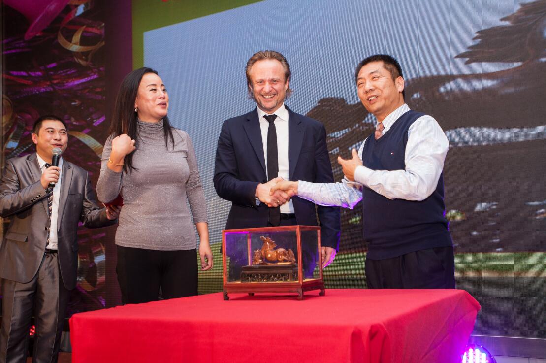 關(guān)愛,是康芝一直倡導(dǎo)的企業(yè)文化,關(guān)愛員工,關(guān)愛家人,關(guān)愛社會(huì),關(guān)愛所有的孩子。慈善拍賣是歷年來康芝年會(huì)舞臺(tái)上獨(dú)有的一道風(fēng)景,也是所有員工和合作伙伴期待的特殊節(jié)目。本屆年會(huì)上,作為紅臉蛋基金會(huì)創(chuàng)始人,洪江游先生再次捐出個(gè)人珍藏多年的的兩件文化收藏品,分別是由中國著名象牙雕刻大師慕秋梅大師匠心打造的硨磲吉祥大擺件,以及寓意萬馬奔騰奮勇向前的海南黃花梨駿馬擺件。兩件藏品分別被公司合作伙伴與外國技術(shù)顧問現(xiàn)場競投成功,共籌集款項(xiàng)人民幣6萬元。該善款的30%將捐贈(zèng)給專注于幫助貧困兒童身心健康成長的康芝紅臉蛋基金,其余則用于現(xiàn)場抽獎(jiǎng)。當(dāng)紅臉蛋基金宣傳片感人的音樂響起,在洪江游董事長帶頭下,康芝高管們競相為紅臉蛋基金現(xiàn)場捐款,員工與嘉賓們亦紛紛慷慨解囊。