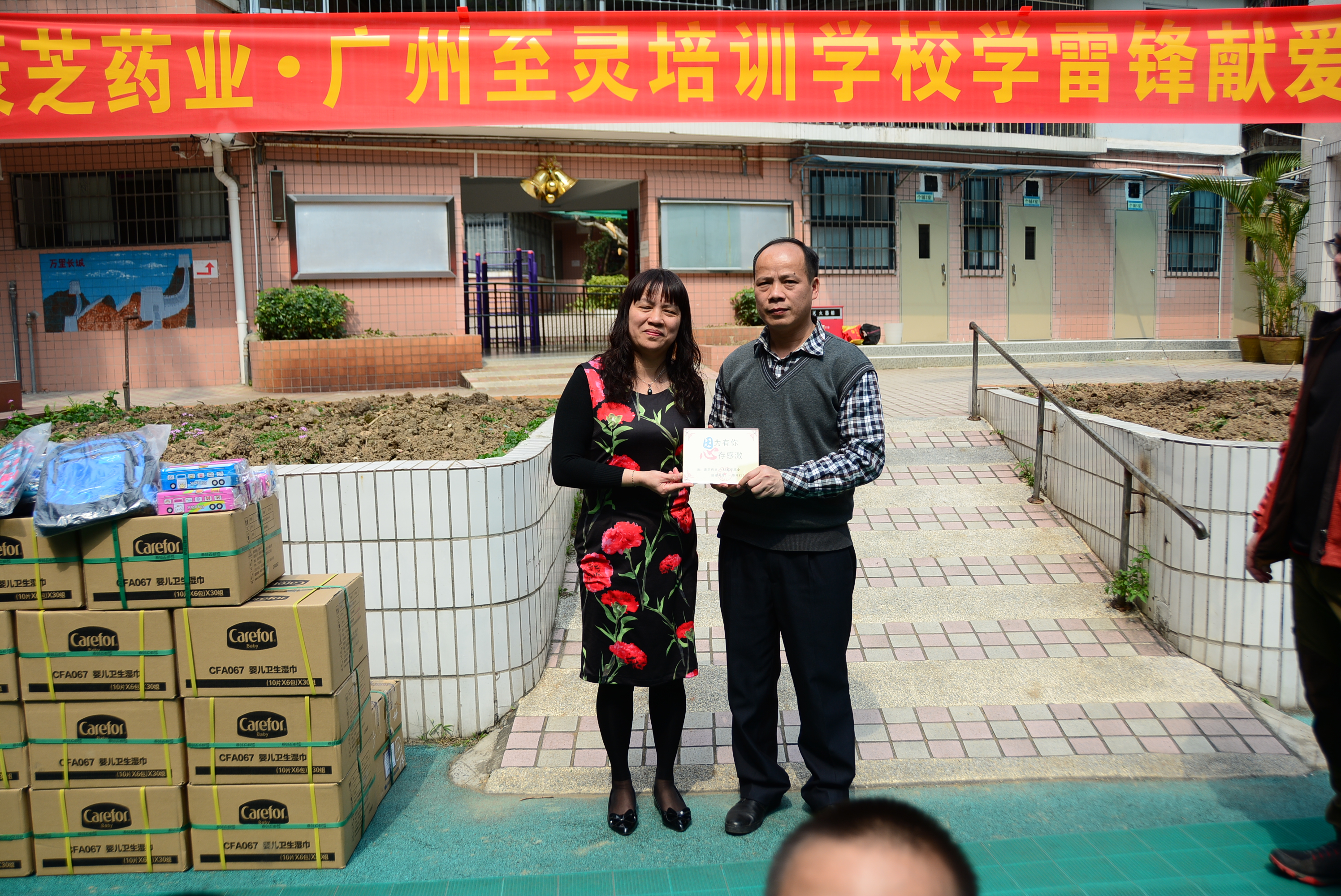 現(xiàn)場,至靈學(xué)校張校長向志愿者代表龍殿康先生贈送愛心牌,并向康芝紅臉蛋基金表示由衷的感謝。