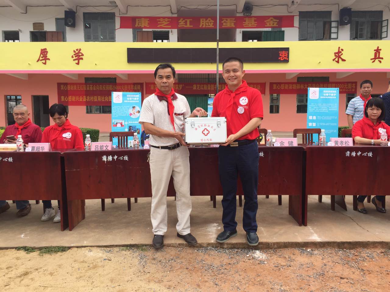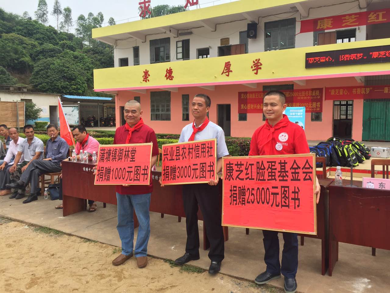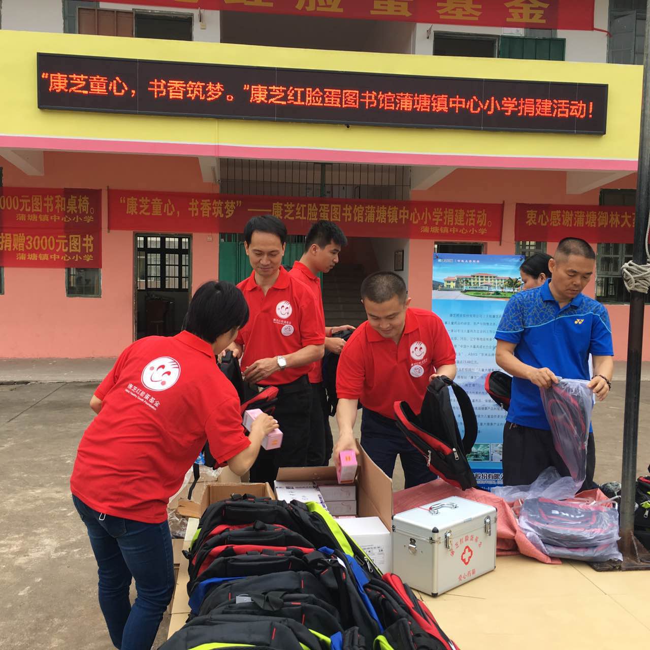 廣西玉林興業(yè)縣教育局鄧廣芳局長,玉林蒲塘鎮(zhèn)文東黨委書記、余健鎮(zhèn)長等領(lǐng)導,興業(yè)縣農(nóng)村信用合作社代表龐一秋、蒲塘鎮(zhèn)御林堂大藥房廖永林等愛心人士,和蒲塘鎮(zhèn)中心小學校長謝宗海等也出席了捐贈儀式。