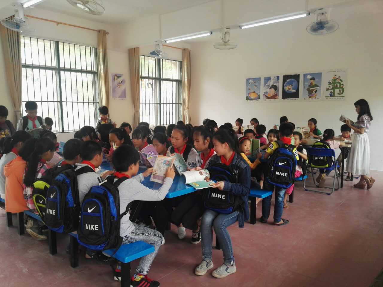 時隔不到一年,康芝紅臉蛋基金再次愛心探訪廣西山區(qū)。這一次,我們?yōu)橛窳制烟伶?zhèn)中心小學的孩子們帶去了一所愛心圖書館……