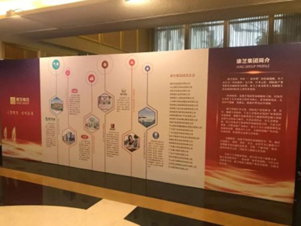 康芝文化展示墻向大家講述康芝發展的點點滴滴。