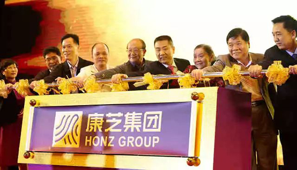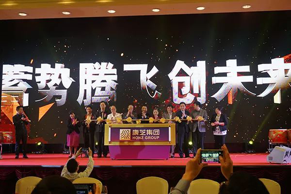 領導、嘉賓齊為康芝集團揭牌。高管上臺祝酒。