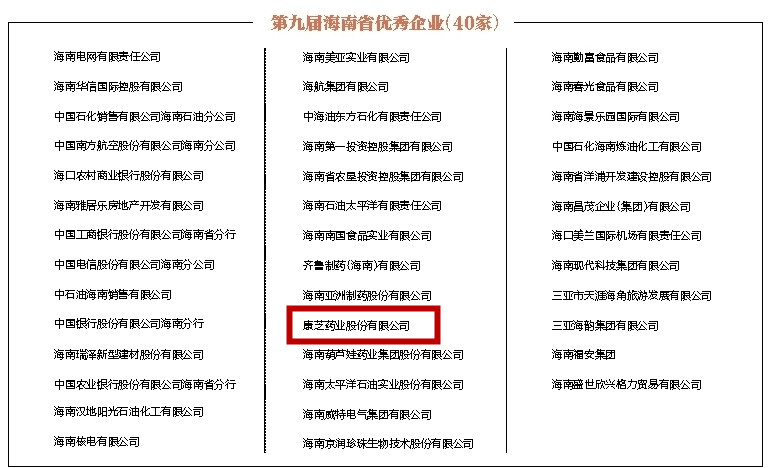 其中,知名兒童藥上市企業(yè)康芝藥業(yè)繼2016年登榜后,今年再度成功入選,榮獲第九屆“海南省優(yōu)秀企業(yè)”稱號。