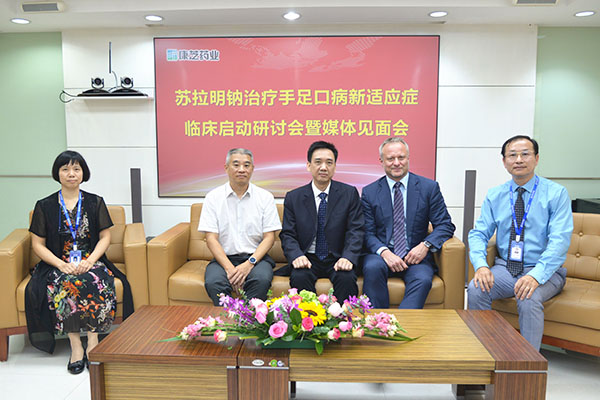 9月19日,專注兒童大健康的上市公司康芝藥業(yè)召開“蘇拉明鈉治療手足口病新適應(yīng)癥臨床啟動研討會暨媒體見面會”,國際知名RNA病毒學(xué)專家、蘇拉明鈉治療手足口病新適應(yīng)癥發(fā)明人RalfAltmeyer教授,廣州兒童醫(yī)院楊思達主任,康芝藥業(yè)副董事長兼副總裁洪麗萍女士,康芝藥業(yè)首席科學(xué)官辜列先生等來自德中兩國的相關(guān)專家及企業(yè)代表共同參加了研討會,共同探討推進蘇拉明鈉新適應(yīng)癥的研發(fā)。