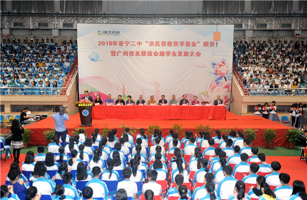 據悉,普寧二中“洪氏獎教獎學基金”由洪江游先生于2016年出資1000萬元設立,旨在獎勵先進,形成“尊師重教,興學育才”的良好風尚。