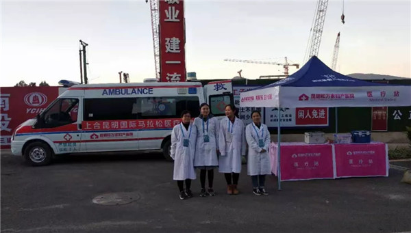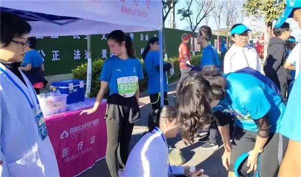 昆明和萬家醫(yī)院作為本次賽事醫(yī)療保障定點醫(yī)院,派出一支專業(yè)的醫(yī)療隊伍,在賽程中設(shè)置了醫(yī)療救護站,并派出醫(yī)護人員分布于賽道,分段進行醫(yī)療監(jiān)護,積極支持保障此次馬拉松賽事的順利舉辦。