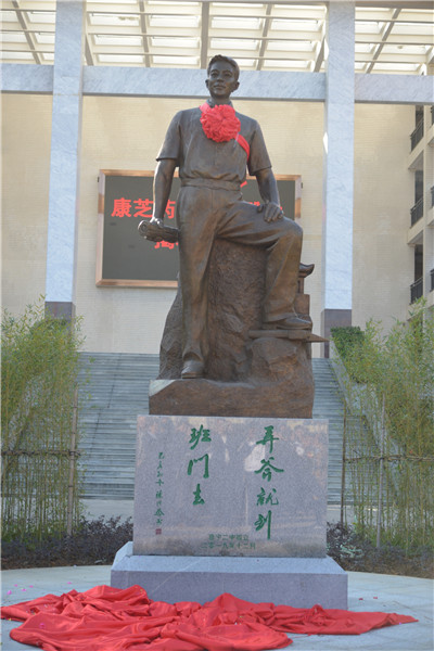普寧市人民政府蔡桂君副市長作了講話,她對普寧二中新校區增添一個標志性的文化景觀表示熱烈的祝賀,并向捐贈雕像的洪江游先生表示崇高的敬意,向雕像家曹崇恩先生等的辛勤付出表示衷心感謝。她希望二中師生不僅要把雕像作為一種校園景觀,而且要更多地思考雕像蘊藏的創新精神,汲取其中蘊藏的精神并用之于教學和學習中去。