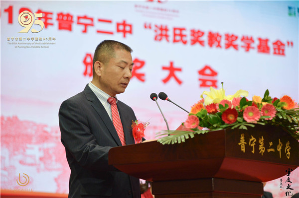 據悉,普寧二中“洪氏獎教獎學基金”由洪江游先生于2016年出資1000萬元設立,旨在獎勵先進,形成“尊師重教,興學育才”的良好風尚。