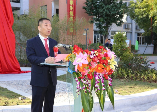 △普寧二中溫俊義校長在雕像落成揭幕儀式上發言