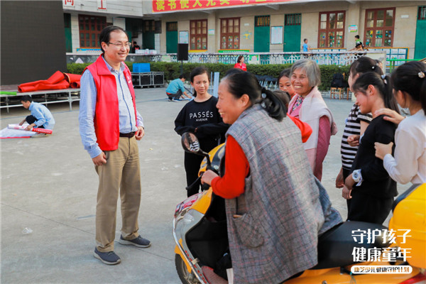 活動當天,康芝紅臉蛋負責人、康芝藥業公關部總監孟攀及大翔藥業創新業務板塊副總經理黃皆準代表企業給孩子們帶來了誠摯的關懷與問候,希望社墩小學的孩子們在今后的日子里好好學習,茁壯成長,并擁有一個健康快樂的童年,也希望更多社會人士加入,共同關注、呵護孩子們的健康,幫助孩子們走向幸福未來。
