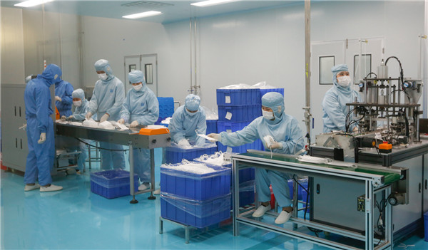 康芝藥業抓緊生產一次性醫用口罩 《海南日報》袁琛攝