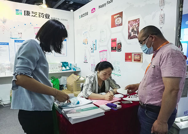 展會上,康芝藥業憑借品類豐富的防疫用品、制藥企業的質量保證以及細心周到的交流服務,吸引了大批海內外采購商等前來參觀、體驗和洽談。