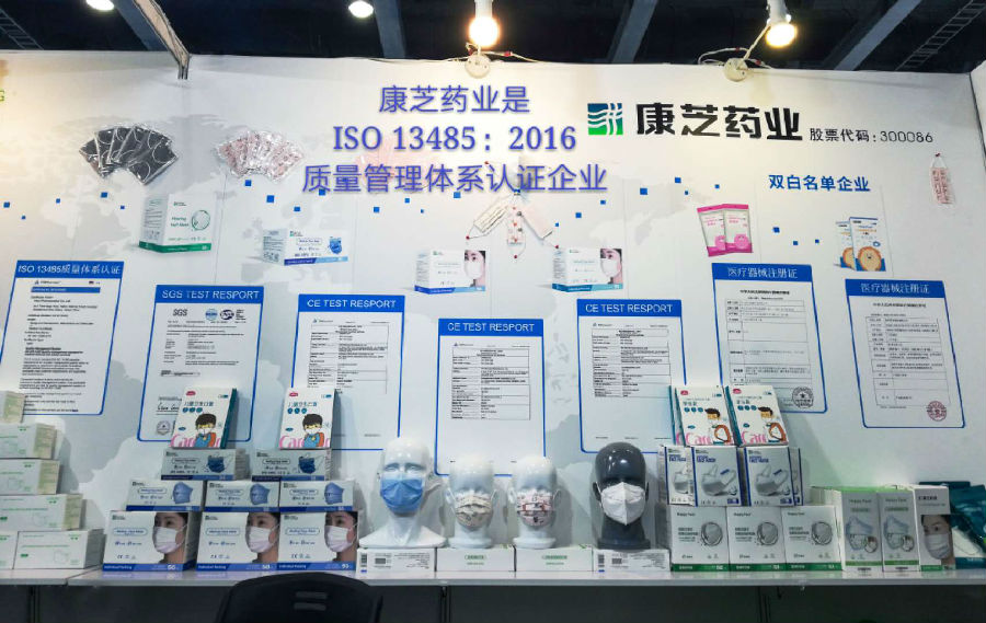 康芝藥業在此次展會上全方位展示了防疫產品,包括醫用口罩、兒童口罩、防護口罩以及消毒產品。