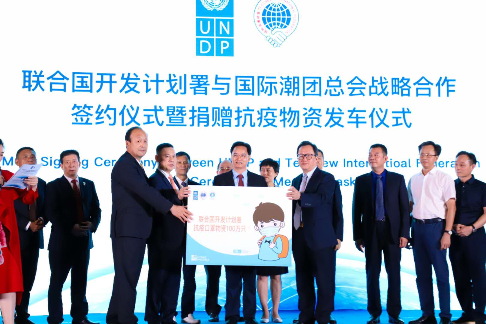 除捐贈抗疫物資發車儀式外,活動中,國際潮團總會主席洪江游、執行主席陳幼南博士代表國際潮團總會簽署了與聯合國開發計劃署的合作備忘錄,雙方正式建立戰略合作伙伴關系。
