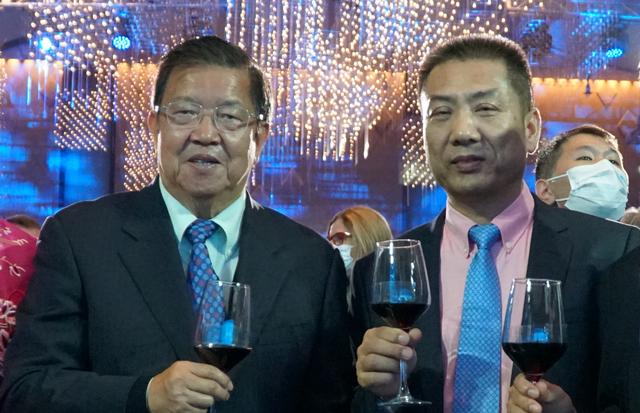 康芝藥業董事長洪江游(右)與聯合國代理駐華協調員桑愛玲(左)合影
