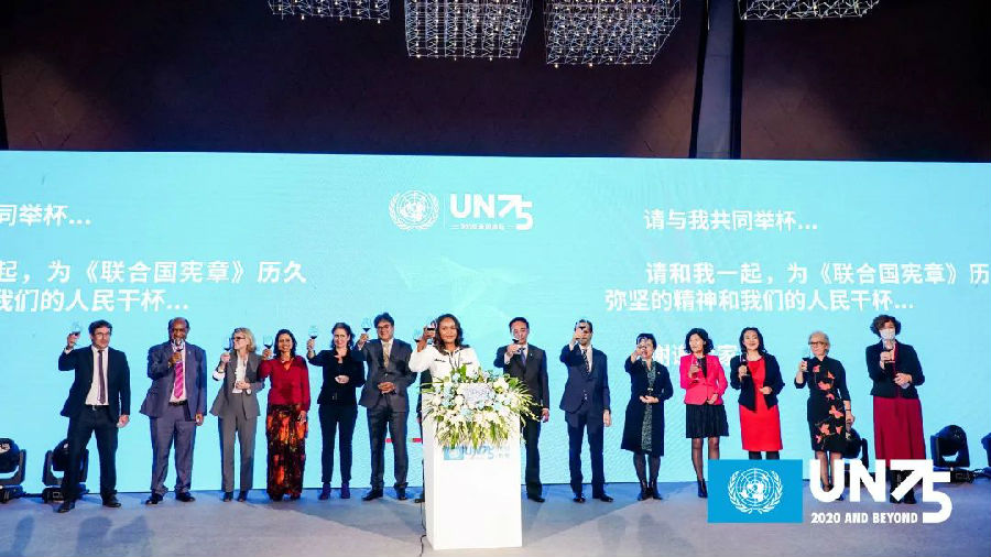 10月30日,由聯合國駐華系統主辦,主題為“聯合國成立75周年:承前啟后,共創未來”的聯合國日慶?;顒釉诒本┞≈嘏e行,慶祝《聯合國憲章》簽署生效暨聯合國成立75周年。