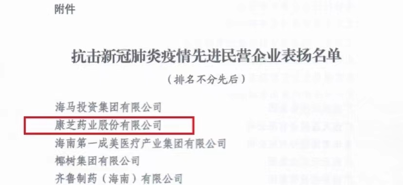 會上,全國工商聯(lián)對康芝藥業(yè)股份有限公司等一批新冠疫情期間充分發(fā)揮自身優(yōu)勢,積極履行社會責(zé)任的民企給予高度表揚,并授予“抗擊新冠肺炎疫情先進民營企業(yè)”榮譽稱號。