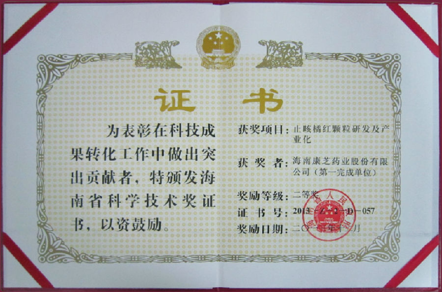康芝?止咳橘紅顆粒作為康芝明星藥品,投產上市多年,適用人群可涵蓋成人及兒童。曾于2010 年被列為國家火炬計劃項目產品,2013年榮獲海南省科技成果轉化二等獎。此次入選“2021年海南省重點研發計劃項目”,更是充分體現了康芝藥業在兒童藥研究領域已具有較強的研究基礎與學術影響力。