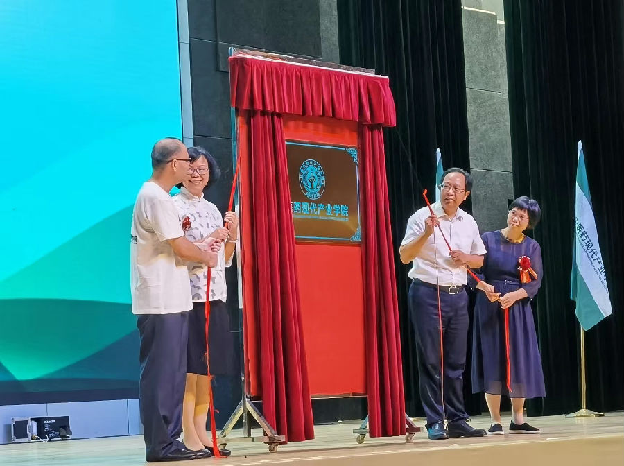 6月25日,“廣東藥科大學(xué)中醫(yī)藥現(xiàn)代產(chǎn)業(yè)學(xué)院”揭牌儀式,在廣東藥科大學(xué)云浮校區(qū)國際會(huì)議中心隆重舉行。中醫(yī)藥現(xiàn)代產(chǎn)業(yè)學(xué)院由廣東藥科大學(xué)聯(lián)合云浮市人民政府、康芝藥業(yè)股份有限公司和廣東君安醫(yī)生集團(tuán)四方共同發(fā)起成立。云浮市政協(xié)黨組書記梁麗嫻主席、廣東藥科大學(xué)黨委書記劉晟教授、廣東藥科大學(xué)校長翟理祥研究員、廣東藥科大學(xué)副校長楊全教授、廣東藥科大學(xué)中藥資源學(xué)院常務(wù)副院長龐玉新研究員、君安醫(yī)生集團(tuán)董事長車軍先生、君安醫(yī)生集團(tuán)聯(lián)合創(chuàng)始人鄒文生女士和康芝藥業(yè)副董事長洪麗萍女士;云浮市中醫(yī)藥管理局、科技局、農(nóng)業(yè)農(nóng)村局等有關(guān)部門領(lǐng)導(dǎo),廣東藥科大學(xué)云浮校區(qū)辦、中藥資源學(xué)院、中醫(yī)學(xué)院、健康學(xué)院、護(hù)理學(xué)院等學(xué)校有關(guān)處室負(fù)責(zé)人,以及廣東藥科大學(xué)中藥資源學(xué)院部分師生,出席了此次揭牌儀式。