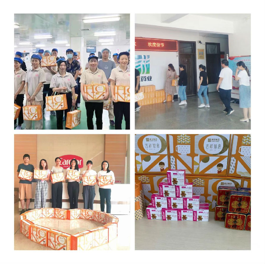 中山愛護和河北康芝也紛紛給員工們送上親手包裝的禮品,現場的禮品被暖心的同事擺放成愛心形狀,在這種富有愛意的氛圍中,能提前跟小伙伴們體會中秋熱鬧的氣氛,又是另一番滋味!