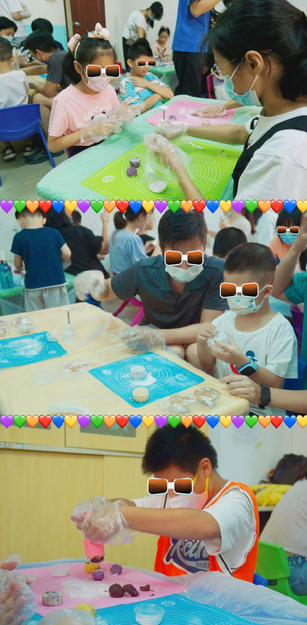 隨后,來自康芝紅臉蛋基金的志愿者們手把手指導(dǎo)孩子們怎么制作冰皮月餅。首先將原材料冰皮月餅粉和水按比例混合,等各位小朋友都完成這個步驟后,志愿者們手把手教小朋友們將粉團(tuán)揉至光滑狀態(tài),再加入不同的果蔬粉,五顏六色營養(yǎng)又健康的小面團(tuán)就揉好了,最后加入孩子們自己喜歡的餡料,放進(jìn)模具里,一只只可愛的冰皮月餅就制作完成啦!
