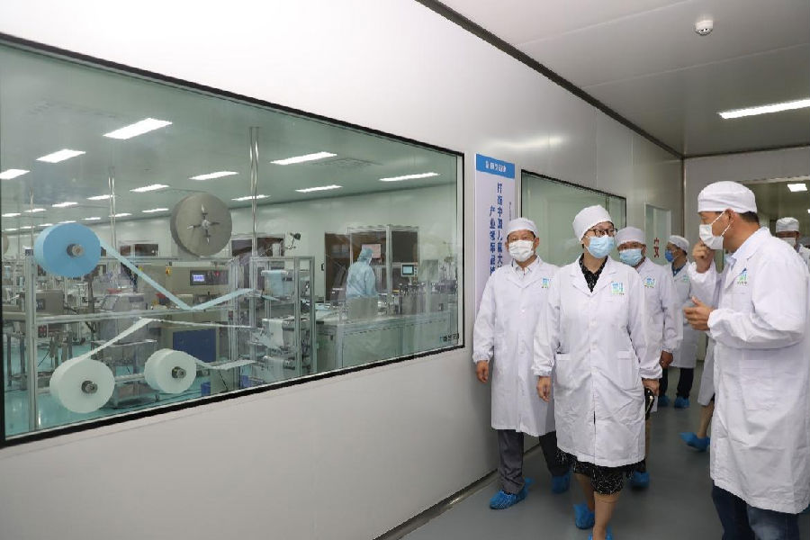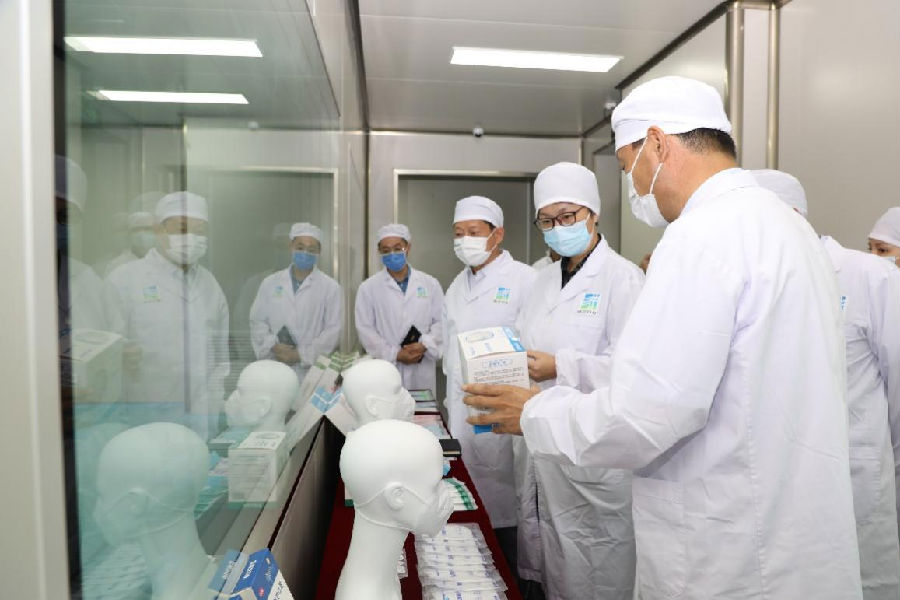 隨后,海南省藥監局朱寧局長一行在我司領導的陪同下,參觀了康芝藥業的醫用防護口罩生產車間,康芝藥業海南基地總經理高洪常現場匯報了康芝藥業的口罩產品情況、海南(國際)醫療防護用品生產基地項目情況以及本次疫情期間康芝藥業踐行的“疫情防控與安全生產兩頭抓”的閉環生產管理辦法。朱寧局長對康芝藥業在疫情期間積極履行社會責任、擴充產能、申報創新產品與服務、服務疫情防控大局等方面給予了充分肯定。