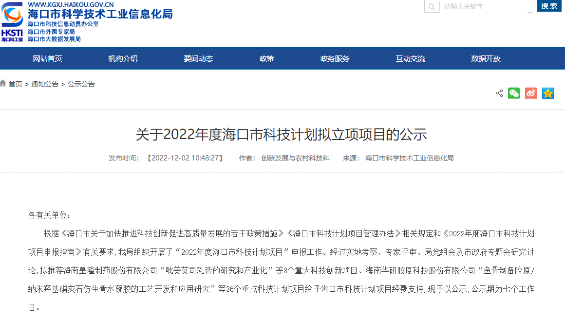 近日,海口市科學(xué)技術(shù)工業(yè)信息化局發(fā)布《關(guān)于2022年度海口市科技計(jì)劃項(xiàng)目立項(xiàng)的通知》,康芝藥業(yè)“布洛芬去氧腎上腺素片臨床試驗(yàn)及產(chǎn)業(yè)化研究”科研項(xiàng)目順利通過專家組評(píng)審,成功入選“2022年度海口市科技計(jì)劃項(xiàng)目”。