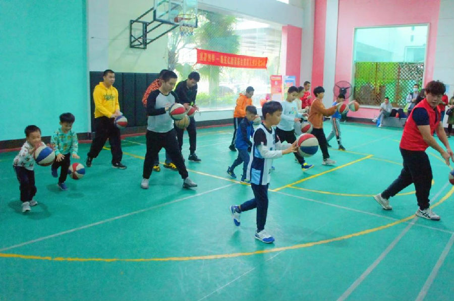 講解完畢,孩子們就已經(jīng)開始躍躍欲試。活動伊始,孩子們嘗試著于他們而言新穎的籃球游戲。因為從未接觸過籃球,他們尚未完全掌握游戲的要領(lǐng),動作也比較生疏,但是在一眾家長和志愿者的鼓勵與幫助下,孩子們大汗淋漓地游玩著,用心地對待每一個游戲環(huán)節(jié),歡笑不斷,嬉笑玩鬧著,現(xiàn)場洋溢著幸福滿足的氣息。球場上孩子們跑動的身影、童真的笑容,仿佛黑夜中星星般的光芒,讓我們?nèi)滩蛔∨南抡掌糇∵@一刻難得的美好。