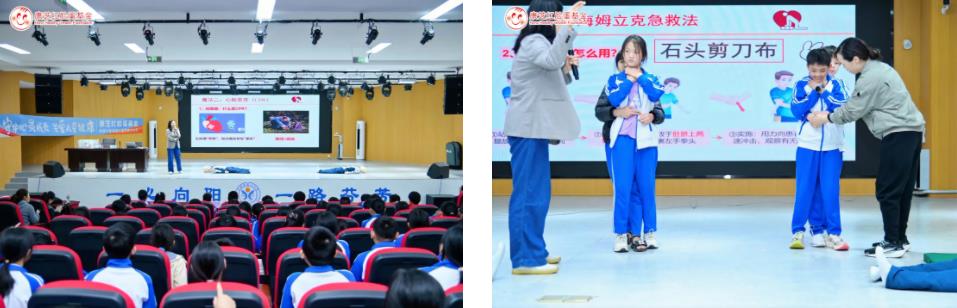 活動期間,海南省婦女兒童醫(yī)學(xué)中心兒童重癥醫(yī)學(xué)科副主任醫(yī)師王琪圍繞“海姆立克與心肺復(fù)蘇急救法——學(xué)會拯救生命的魔法”主題,詳細講解了急救的基本原理與操作步驟,并通過真人示范和情景模擬,為學(xué)生們帶來一堂生動實用的“生命必修課”。