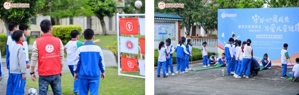 同時,活動還設(shè)置了趣味互動環(huán)節(jié)。學(xué)生們在專業(yè)教練的指導(dǎo)和康芝紅臉蛋基金志愿者的陪伴下,積極參與趣味運動,在奔跑、投擲與歡呼中感受運動的樂趣,釋放學(xué)習(xí)上的壓力。