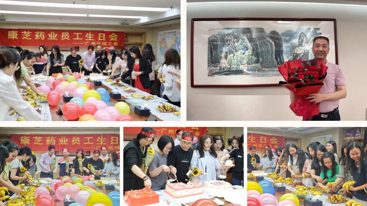 當日下午,廣州區域員工生日會在大會議室圓滿舉行。活動現場經過精心布置,五彩斑斕的氣球、精致的裝飾隨處可見,桌上精美的生日蛋糕、新鮮的水果,精心挑選的向日葵、甜蜜的巧克力,無一不在向康芝壽星們傳遞著美好祝福。