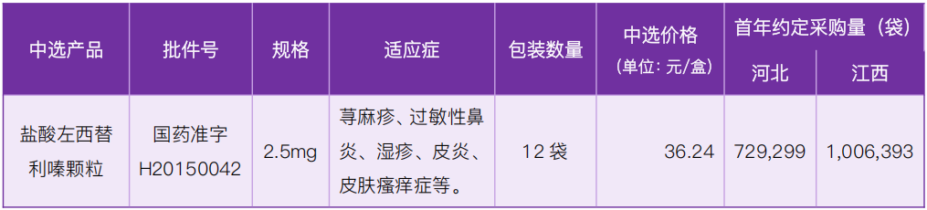 鹽酸左西替利嗪顆粒中選本次集采后,采購周期內醫療機構、定點藥店將優先選擇使用中選藥品,保障按時完成約定采購量;若提前完成約定采購量,中選企業仍需按中選價供應超出約定采購量部分的中選藥品,直至采購周期結束。